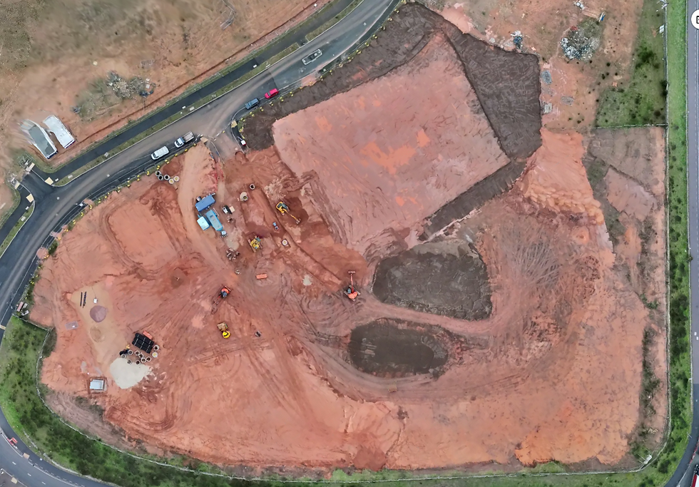 The aerial photograph above shows the current condition of the site, where early construction activity is underway. Ground preparation works have been carried out across the site footprint, including earthworks and site levelling, as part of the initial stages of development.